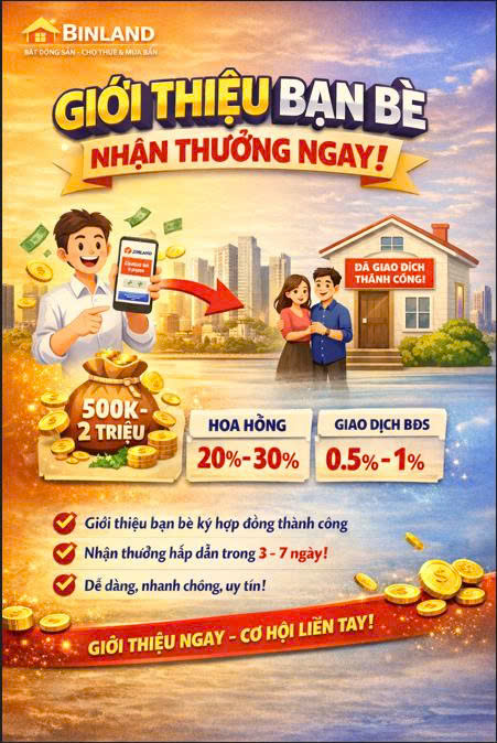 Thưởng 20% – 30% hoa hồng thực nhận của Binland (nếu bạn đang triển khai cơ chế chia hoa hồng trên website).